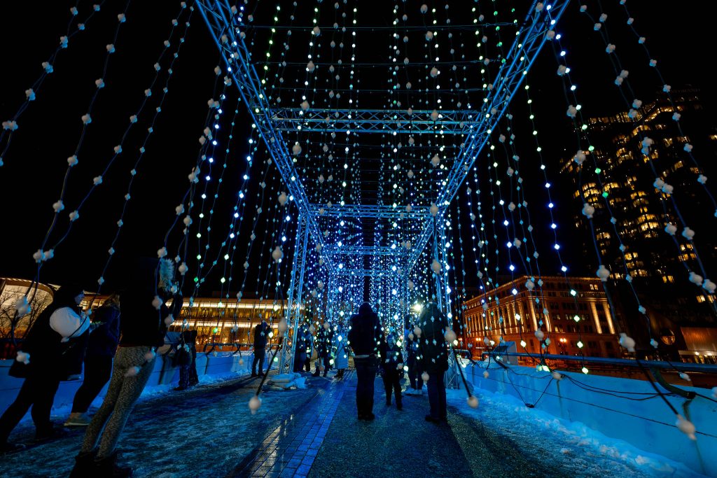 Submergence is a large, immersive, walkthrough experience. It uses thousands of individual points of suspended light to create feelings of presence and movement within physical space.